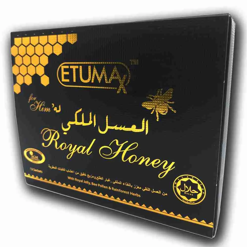 يعالج ضعف الحيوان المنوي. صالح للإستخدام من قبل النساء و الرجال. يزيد من خصوبة السائل المنوي و الطاقة الجنسية. عسل إتوماكس الملكي  هو مصدر فوري للطاقة لتعزيز الحيوية. وهو مزيج نقي من غذاء ملكات النحل وحبوب لقاح النحل وأعشاب الغابات الغنية بالزهور. عسل نقي مدعم بمزيج منتقى من أعشاب الغابات المطيرة (تونغكات علي والجينسنغ).
