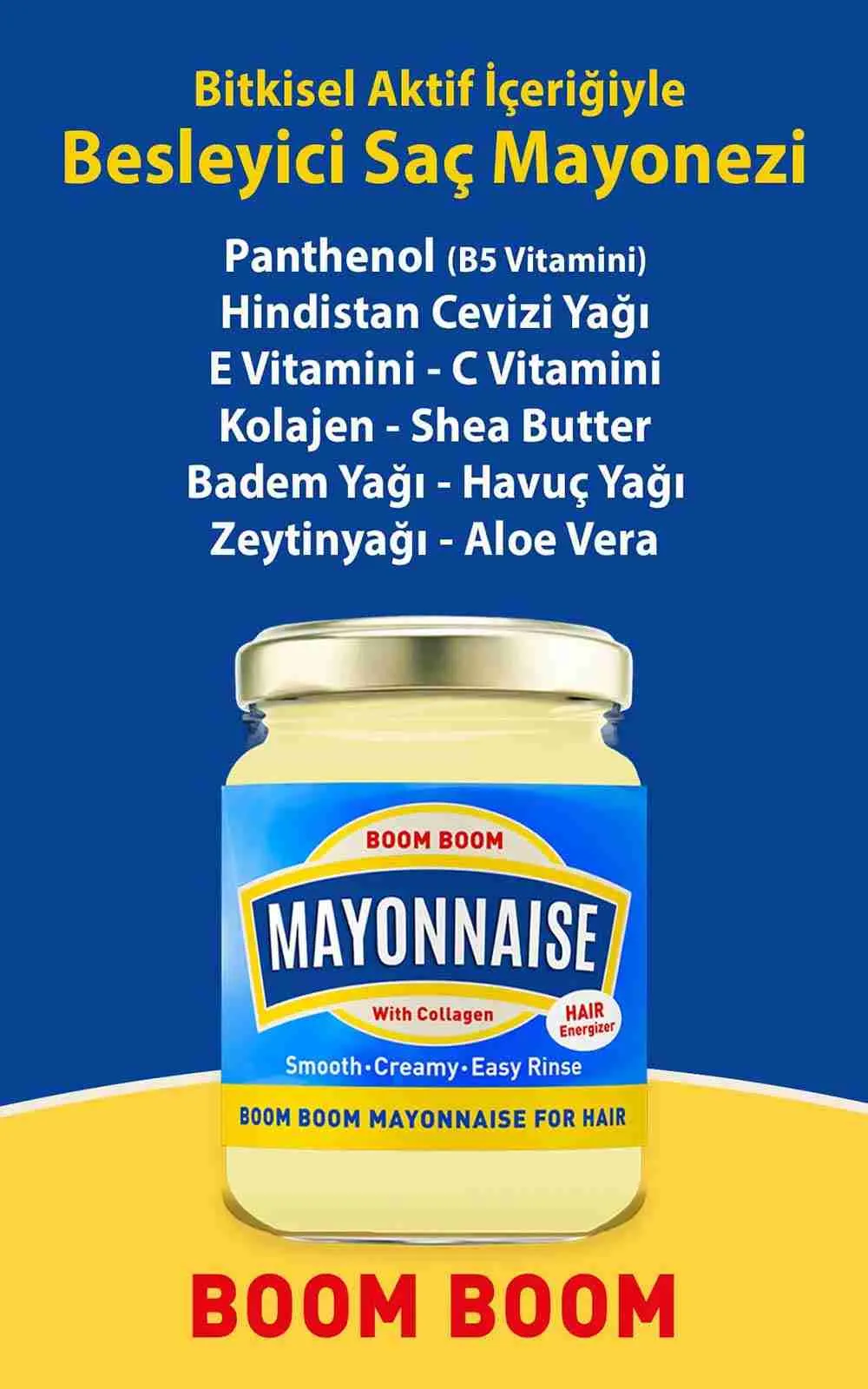 المايونيز هو منتج للعناية بالشعر يعمل على دعم خيوط الشعر التالفة لتبدو أكثر جمالًا ، ولزيادة مرونتها وتقويتها ضد الظروف البيئية ، مع دعم الكولاجين الذي تحتويه.
