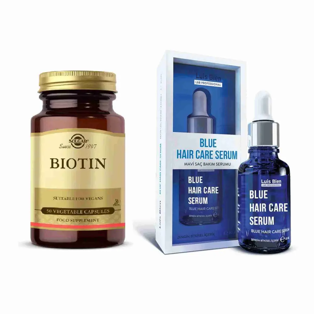 مجموعة كبسولات البيوتين من سولجار 5000ميكروجرام مع سيروم لويس بيان للعناية بالشعر