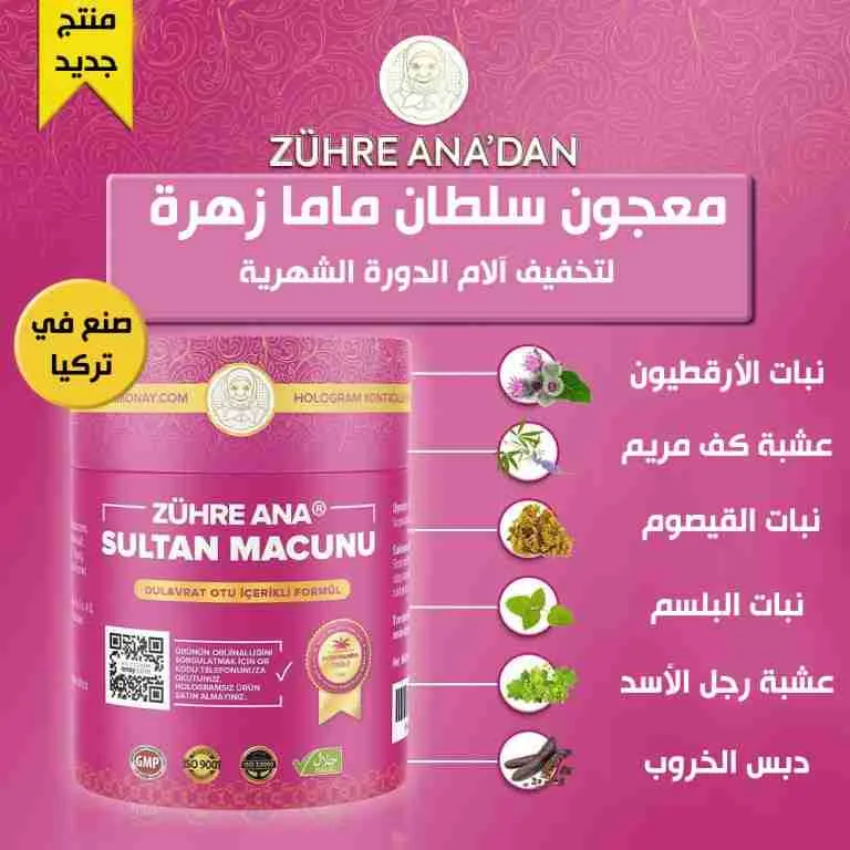 معجون Zühre Ana Sultan Paste Burdock Paste يعالج الام الدورة الشهرية يحتوي على تركيبة غنية وآمنة تعمل على تهدئة آلام الدورة الشهرية