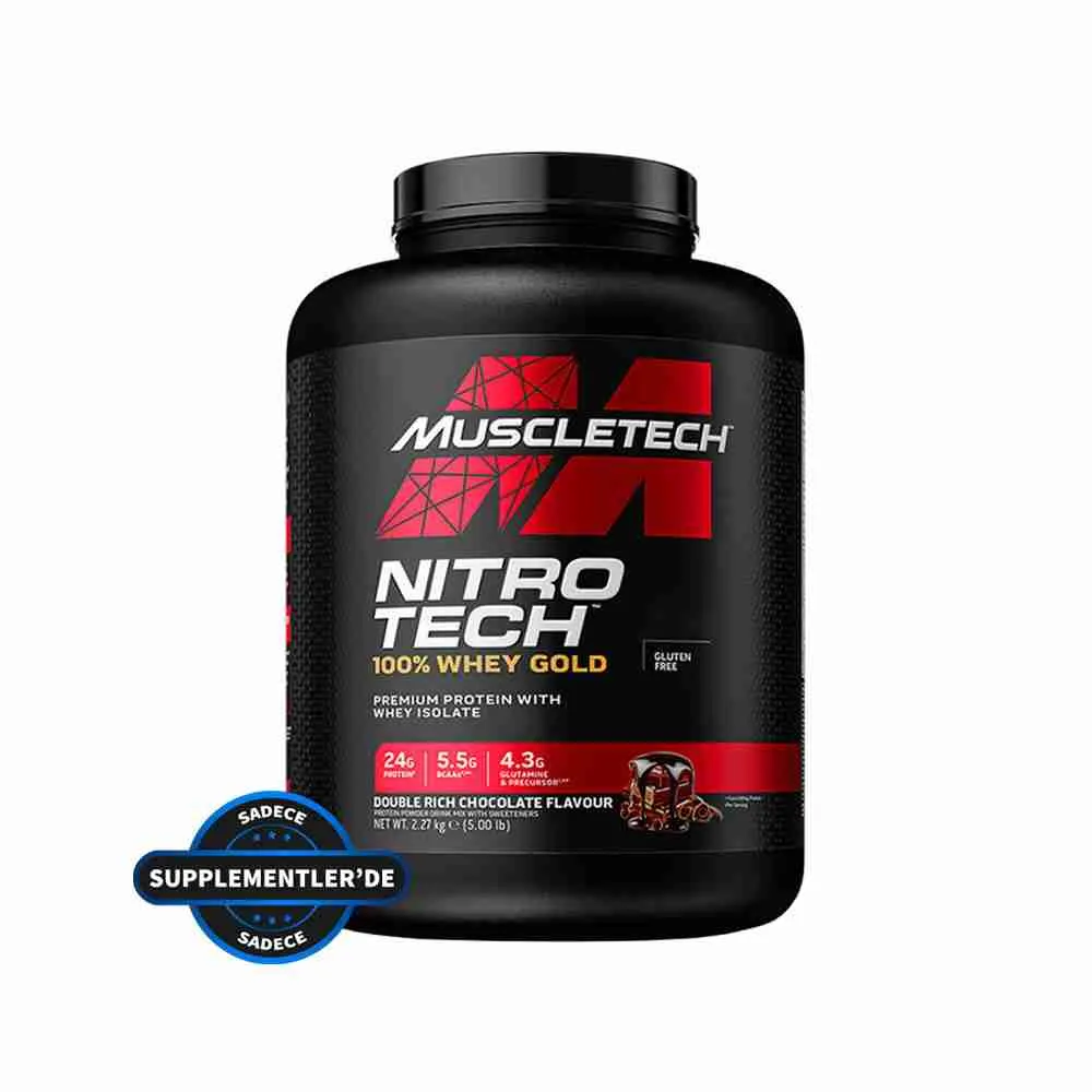 مكملات البروتين مصل اللبن الجديد الذي طورته شركة Muscletech ، التي تنتج الأطعمة الرياضية منذ عام 1998. يوفر Nitro-Tech 100٪ Whey Gold 24 جرامًا من بروتين مصل اللبن لكل وجبة.