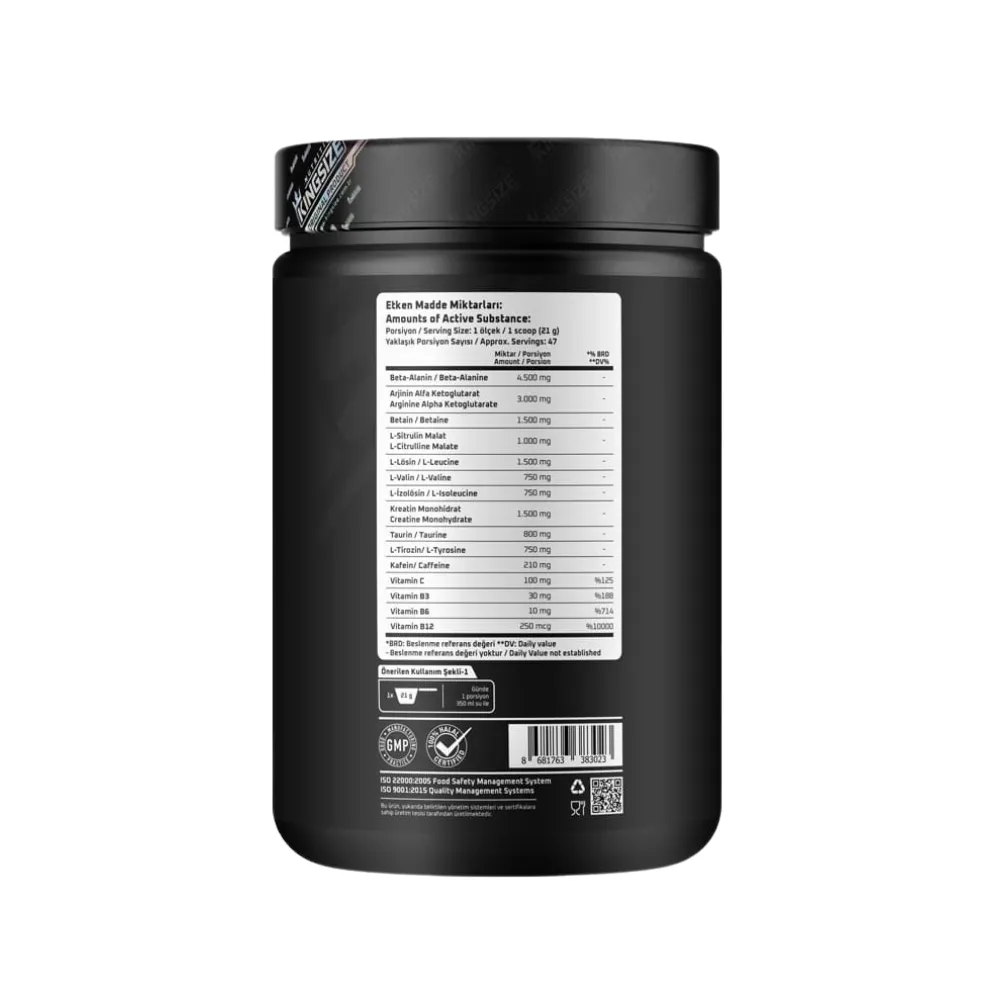 Kingsize Beast Mode هو مكمل غذائي قوي لما قبل التمرين، مصمم لزيادة الطاقة، التحمل، وضخ الدم إلى العضلات. يحتوي على الكرياتين، BCAA، وفيتامينات B وC لتعزيز الأداء الرياضي، تحسين الاستشفاء، وتقليل الإجهاد. مثالي للرياضيين الذين يسعون لتحقيق أقصى أداء في التمارين المكثفة